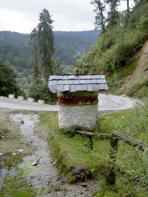ラマ教ではマニ車をせっせと回すことによって願いが叶ったりご利益があったりとされるみたい。道路脇にある小型仏塔の中にはマニ車があり、沢水を引いてその水力で延々と回り続ける仕掛けがありました。