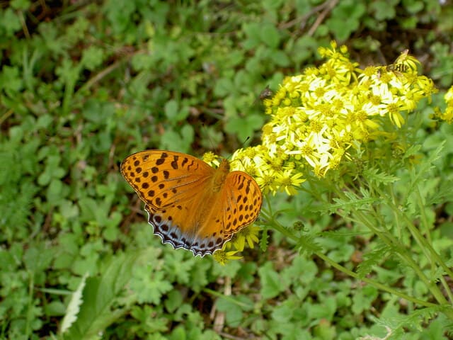 この大型のヒョウモンチョウの飛翔は小気味よいほどに力強く、春と秋に出現します。