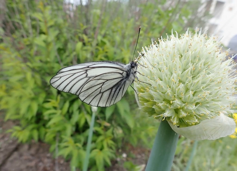 午前10時頃。 大きな白い蝶がさっそうと庭を飛んでいる。