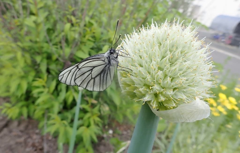 ネギ坊主はよほど蜜量が多いようで夢中で吸蜜しており撮影は容易でした。