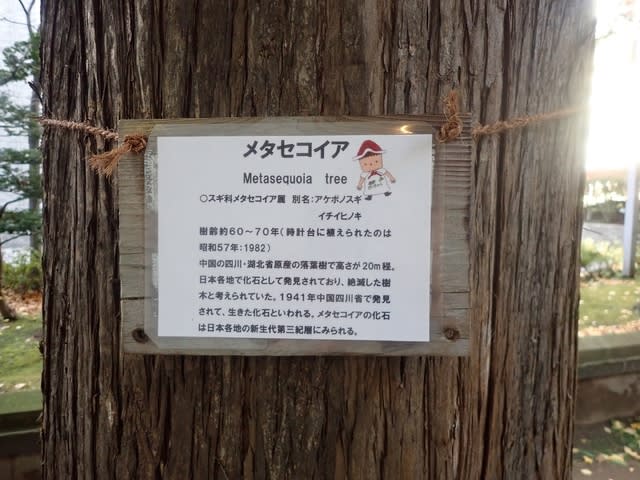 生きた化石などと言われるメタセコイヤの大木がありました。私も昔メタセコイヤの化石探しに夢中になったことを思い出しました。