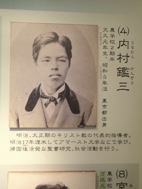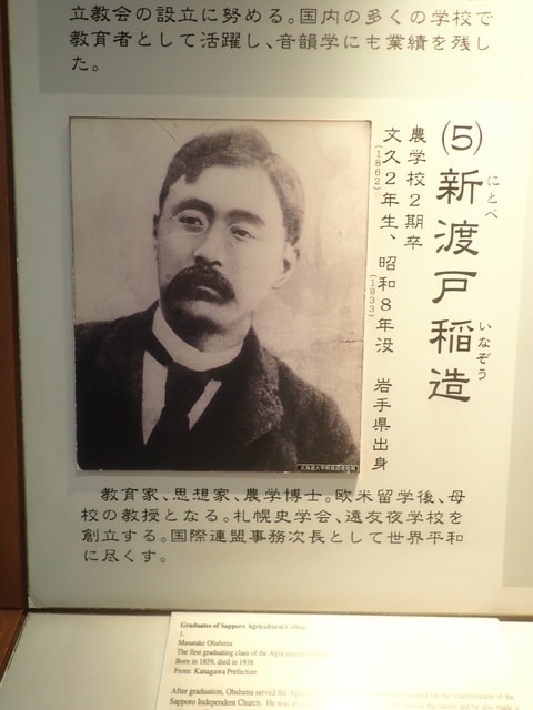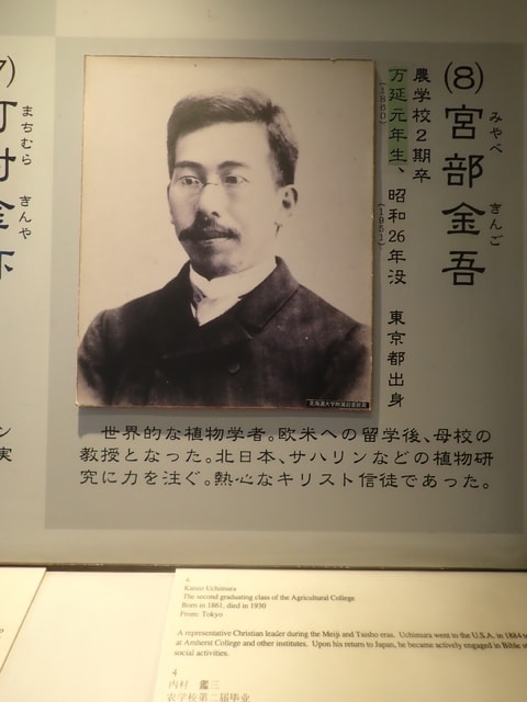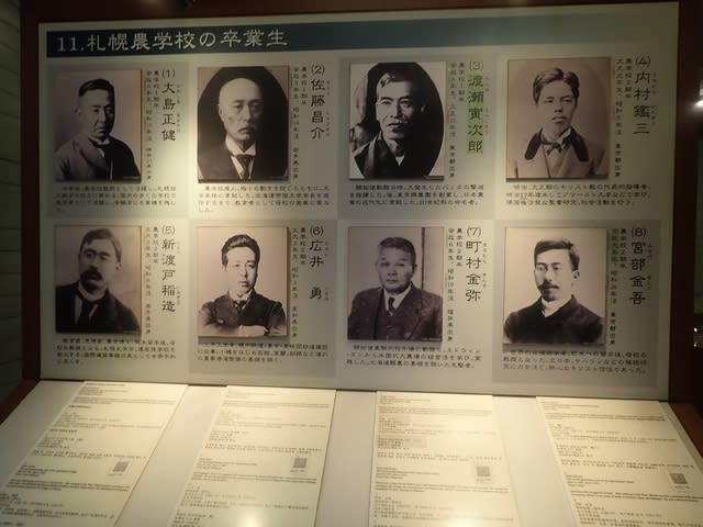 出ようと思ったら、見落としていたコーナーがあり、そこには札幌農学校( 現北海道大学 )出身の有名人たちの写真と業績がずらりと展示してあったのです。